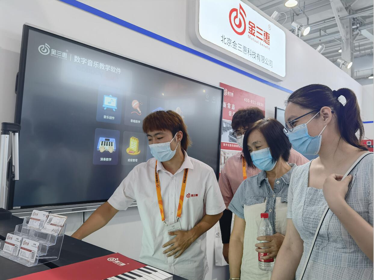 9月2至7日,北京金三惠科技有限公司亮相2021年中國國際服務貿易交易會,本屆展會,金三惠以 “建黨百年 數字音樂教育 科技領航“,展示數字音樂教學產品“大數據+云平臺”新模式、新常態、適合未來音樂教育的長期發展,加快推動數字音樂教育產業升級。