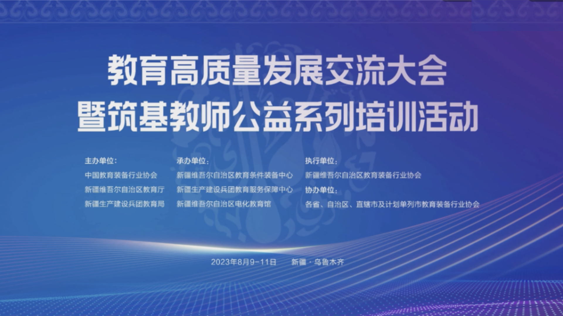 2023年8月9日,由中國(guó)教育裝備行業(yè)協(xié)會(huì)、新疆維吾爾自治區(qū)教育廳、新疆生產(chǎn)建設(shè)兵團(tuán)教育局主辦的教育高質(zhì)量發(fā)展交流大會(huì)暨筑基教師公益系列培訓(xùn)活動(dòng)在新疆醫(yī)科大學(xué)成功舉辦。新疆教育部、各省教育廳相關(guān)領(lǐng)導(dǎo),各省市教育裝備、電化教育館等有關(guān)部門負(fù)責(zé)人;各省市教育裝備行業(yè)協(xié)會(huì)相關(guān)負(fù)責(zé)人;以及各省市中小學(xué)校負(fù)責(zé)人、各學(xué)科教師等人員參加此次會(huì)議共同研討教育領(lǐng)域最新的技術(shù)和裝備,助力教師提升教學(xué)技能,促進(jìn)提升教學(xué)質(zhì)量。