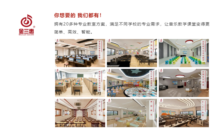 金三惠深耕音樂教育三十余年,專注為各類學(xué)校提供一站式音樂教室解決方案。始終堅(jiān)持從教育出發(fā),不斷升級(jí)數(shù)字音樂教室整體解決方案,專業(yè)化的服務(wù)態(tài)度助力教育高質(zhì)量發(fā)展。