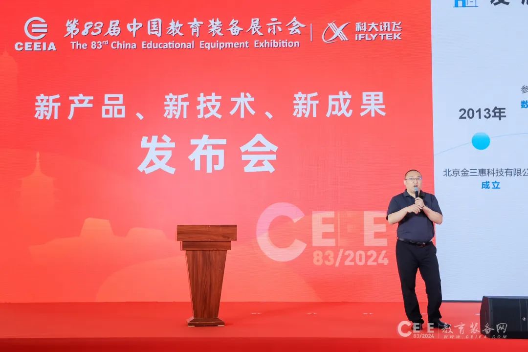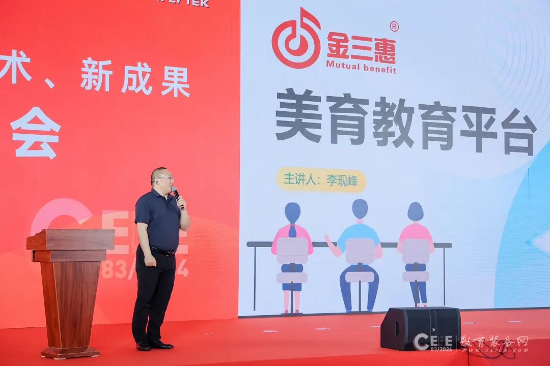 總經(jīng)理李現(xiàn)峰在第83屆中國教育裝備展示會——“新產(chǎn)品、新技術(shù)、新成果”發(fā)布會上,進行“美育教育平臺解決方案”的專題演講。