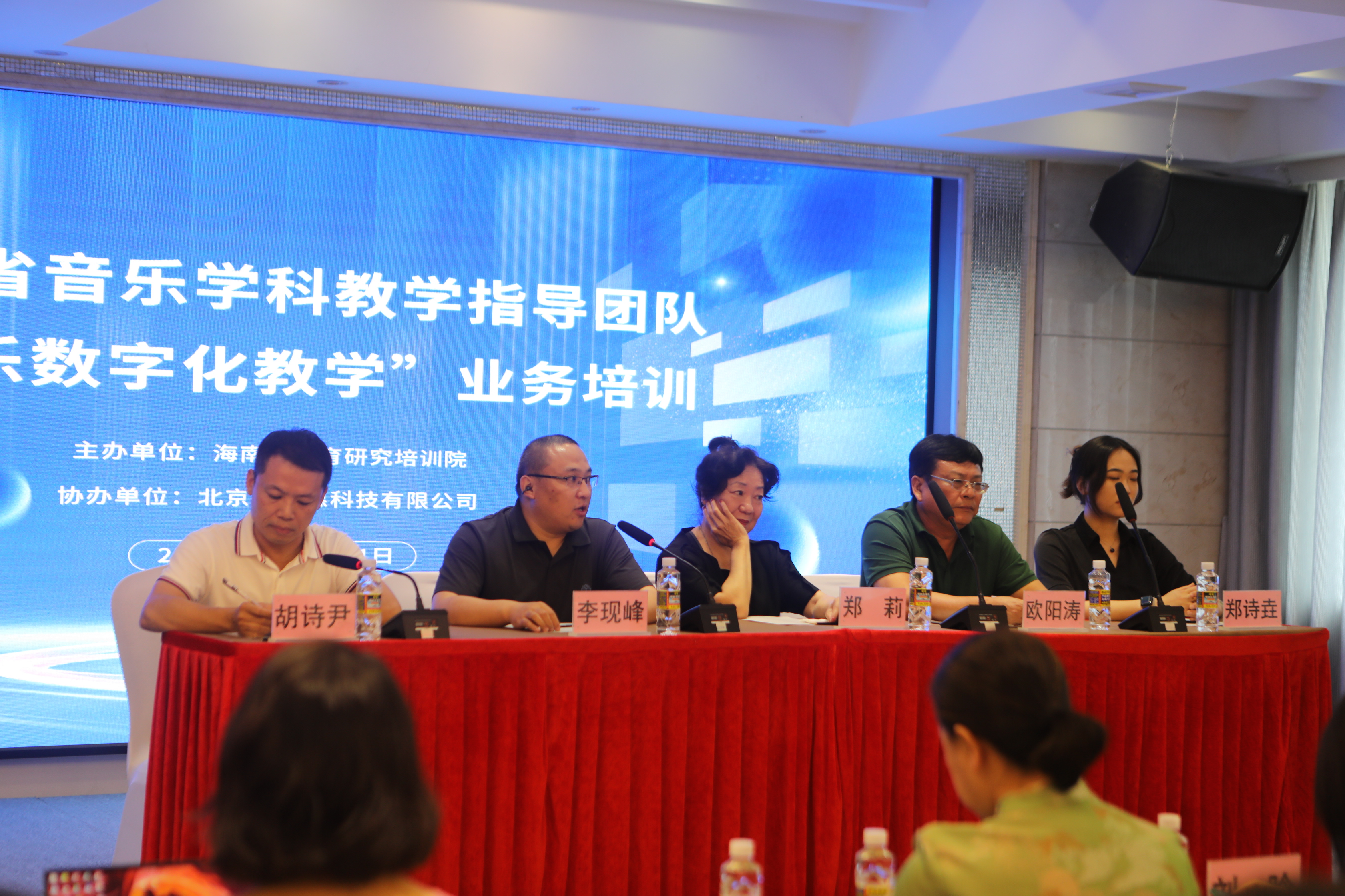 海南省中小學(xué)音樂教研員歐陽濤,首都師范大學(xué)音樂學(xué)院教授、博導(dǎo)、基礎(chǔ)音樂教育課程改革專家鄭莉,北京金三惠總經(jīng)理李現(xiàn)峰等領(lǐng)導(dǎo)和專家出席,瓊海市教育研究培訓(xùn)中心胡詩尹主持培訓(xùn)會(huì)。