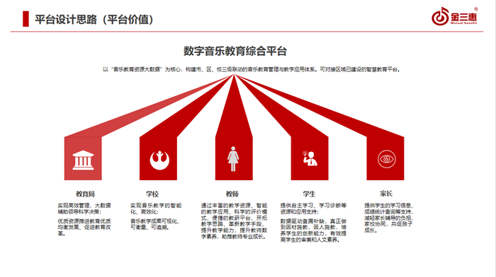 金三惠數(shù)字音樂教育綜合平臺緊跟教育部印發(fā)關于《關于全面加強和改進新時代學校美育工作的意見》、《教育信息化2.0行動計劃》、《教師數(shù)字素養(yǎng)》等政策文件,在教育數(shù)字化建設飛速發(fā)展的趨勢下應運而生,平臺由音樂教學軟件平臺、音樂測評訓練平臺、數(shù)字教學資源、數(shù)字音樂管理平臺組成,是音樂教育管、教、學、評一體化解決方案。