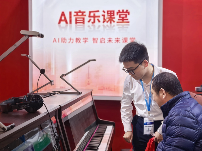 展會首日,金三惠展位參觀者絡繹不絕,公司展出的AI音樂課堂、智慧音樂素養教室、數字音樂教學平臺等核心產品,吸引了眾多教育行業從業者的駐足與體驗。