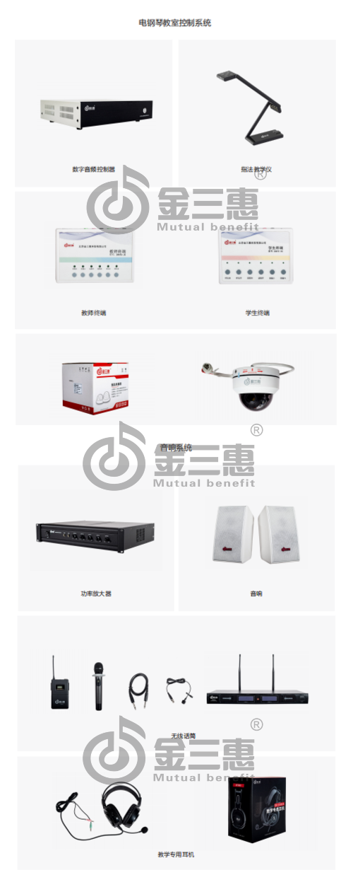 金三惠提供一站式「新常態音樂教室解決方案」「數字音樂教育綜合解決方案」,熱銷產品有:數字音樂教學軟件、美育測評訓練平臺、電鋼琴/電子琴教學管理軟件、電鋼琴教室、智慧音樂素養教室、數字電教板、各大類音樂器材、音樂教學設備等。為區域音樂教育提供管、教、學、評、練綜合平臺,打造智慧平臺+智能硬件+數字資源+智能管控+教學評價為一體的全場景學習生態,實現區域數字化音樂教育轉型。
