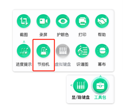 要根據曲譜的拍號選擇節拍機(節拍器)的預備拍哦~,點擊右下角的工具包中的節拍機,有1-6拍可以選擇。