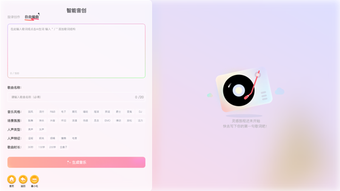 AI編創:一鍵生成詞曲,降低創作門檻,激發學生原創表達,契合新課標“音樂創作”模塊,培養學生的創新思維與實踐能力,并使其初步體驗人工智能在藝術創作中的應用。