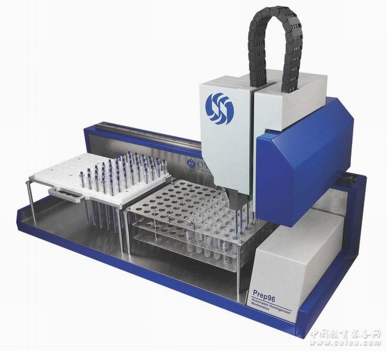 產品詳細介紹主要優勢 全自動、高通量 4個均質探頭,最大初始樣品數96個 自動抓取和排放探頭,避免交叉污染 自動檢測探頭是否在位,防止遺漏 標配96 X 15mL或24 X 50mL 探頭:7mm塑料探頭,7mm混合探頭,5、7、10mm不銹鋼探頭 可使用實驗室常用的離心管 可選配探頭超聲清洗裝置 儀器特點 全自動、高通量、高效率、高重復性,提供各類樣品最佳均質解決方案 適用于DNA、RNA、蛋白質、酶、病毒等分子抽提前的樣品研磨、裂解和均質,能夠確保分子的完整性 微處理器控制,不間斷運行,每個循環內無需人工值守 采用最新Whisper靜音驅動技術和無刷免維護電機,40W,噪音小,效率高 可編程模擬人工均質方式,保證最佳均質效果 較小占地面積(約100 X 43cm),可在超凈臺內方便使用 模塊式設計,便于設置以及電機更換或升級 4個探頭同時均質4個樣品,每個循環可最多均質96個15mL樣品 獨立均質每個樣品,每個樣品處理量2 – 50mL(可選配至100mL) 不銹鋼樣品管架,標配容量為96個15mL樣品管或24個50mL樣品管 最大初始樣品數96個 均質速度快,每4個樣品均質僅需30 – 60秒,每96個樣品的循環一般不超過30分鐘 速度可調:500 – 28,000rpm,適合均質不同類型的樣品 樣品處理時間可調:10 – 999秒,期間可設置暫停以冷卻樣品 具有探頭自動抓取并安裝功能 具有探頭液面感應功能,探頭浸入樣品液體深度可設置,確保均質安全高效 每個樣品均質前,自動檢測探頭是否在位,防止因探頭未安裝或未被抓取而遺漏樣品均質 探頭可被自動排放并收集在容器內或單獨的試管架上,消除樣品間的交叉污染 人性化設計的控制軟件操作直觀簡捷,便于設置各種步驟和方法 均質速度、時間、探頭深度、探頭擺動幅度等可調,參數可編程并儲存 可使用Omni Tip 7mm塑料探頭、Omni Tip 7mm混合探頭、Omni Tip 5、7、10mm不銹鋼探頭 無需使用特制的樣品管,實驗室常用的離心管均可作為樣品管使用 使用Omni Tip 7mm塑料探頭或Omni Tip 7mm混合探頭時,可完全避免樣品間交叉污染 可選配探頭超聲清洗裝置 可選配用于最大到100mL樣品管的管架和大功率 |