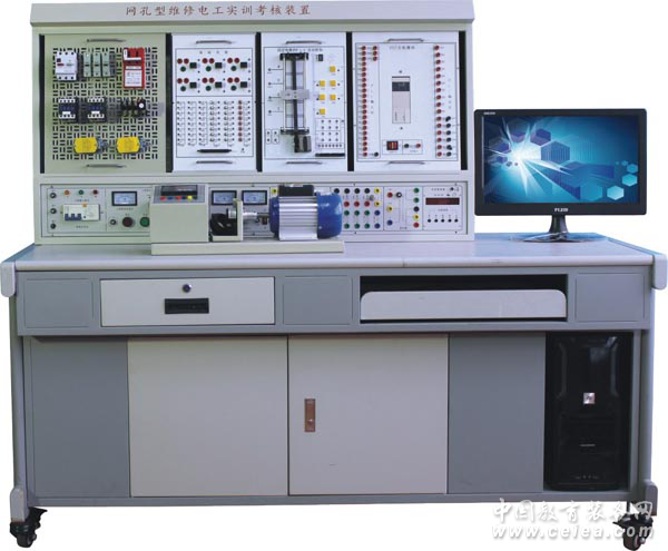 產品詳細介紹 HKWK-99B型網孔型中級維修電工實訓考核裝置 一、概述 該裝置主要由實訓桌、網孔板、實訓元器件(也可自購)組成。學生根據實訓線路進行元器件的合理布局,安裝、接線全部由學生自行完成,接近工業現場,能完成電工基礎電路,電機控制線路,照明配電的模擬操作,PLC可編程綜合應用線路,電子技術應用電路的綜合實訓,通過一系列項目實訓培養學生動手能力和實操技能。實訓項目可自行確定,根據所選的項目選擇相應的元器件。該裝置也可作為電工考工的考核設備。 二、特點 1、實訓采用網孔板與掛箱相結合的方式,實訓操作方便、更換便捷、易擴展功能或開發新的實訓項目,動手能力強,接近工業現場。 2、綜合性強:能完成電工、電力拖動、電氣控制、PLC綜合控制、電子技術多門學科的技能訓練。 3、操作臺只需三相四線的交流電源即可投入使用,占地面積小、節約實訓用房、減少基建投資、經濟效益顯著。 4、設有電壓型漏電保護器和電流型漏電保護器,能確保操作者安全,電源輸出均有監視及短路保護功能。 5、380V交流輸出處設有單片機全程控制的一套過流保護裝置,相間、線間直接短路或過載電流超過設定值系統即切斷總電源,確保設備的安全。 6、實訓管理器:平時作為時鐘作用,具有設定實訓時間、定時報警、切斷電源等功能,還可以自動記錄由于接線或操作錯誤所造成的漏電告警總次數,為學生實訓考核提供一個統一標準。 三、技術性能 1、輸入電源:三相四線制~380V±10% 50Hz 2、溫度:-5℃~+40℃,相對濕度<85% 3、裝置容量:<1.5KVA 4、外形尺寸:1600mm×750mm×1560mm 四、實訓裝置基本配置及功能 (一)實訓屏 實訓屏為鐵質雙層亞光密紋噴塑結構,鋁合金面板,為實訓掛箱提供交流電源、直流穩壓電源、恒流源、實訓器件等,具體功能如下: 1、控制及交流電源部分 (1)提供三相固定380V交流電源,相間、線間及直接短路或過載由單片機全程自動監控自動保護。電流型電壓型漏電開關開啟后由啟動和停止按鈕控制實訓臺工作電源。具有告警和復位功能。 (2)提供~220V插座2只,為外部儀器提供工作電源。 2、直流電源部分 (1)提供0-30V連續可調,直流輸出2A穩壓電源,內置式繼電器自動換檔,多圈電位器連續調節,使用方便。有數字電流電壓表指示。 (2)低壓直流穩壓電源:+5V,±12V、+24V,具有短路保護功能。 (3)恒流源:一路0-500mA連續可調恒流源,分2mA、20mA、500mA三檔,配有數字式直流毫安表指示輸出電流,具有輸出開路、短路保護功能。 3、交流低壓變壓器:380V+220V/6.3+26V+110V 4、4只5408二極管,用于能耗制動 5、三只75Ω/75W電阻用于電動機降壓啟動,一只10Ω/25W電阻用于電動機能耗制動。 6、實驗管理器:用于設定實驗時間、定時報警、記錄故障次數,平時可作為時鐘使用。 (二)實訓掛箱 1、PLC主機掛箱 配三菱FX1N-40mR主機,集成數字量I/O(24路數字量輸入,16路數字量輸出),RS-422通訊口,SC-09通訊編程電纜及轉接輸入輸出口、開關等。隨機配置仿真教學軟件及工控組態軟件。 (1)PLC仿真實訓軟件一套 a.通過PLASH虛擬環境實時顯示PLC的運行狀態 b.可以實現PLC虛擬接線,并對接線進行錯誤檢查 c.PLC編程訓練、PLC程序編寫測試等功能 d.實現PLC運行模擬,對錯誤程序進行檢查 (2)工控組態軟件一套 打開軟件編程環境,任何實訓都可以編輯出形象直觀動感強、教學效果好的組態棒圖,并進行實訓動態跟蹤教學。 2、PLC實訓演示掛箱 序號 編號 控制對象實訓模塊 實訓教學目標 1 SX1 搶答器/音樂噴泉 通過對搶答系統中各組人員搶答時序的監視和控制,掌握條件判斷控制指令的編寫方法;通過對音樂噴泉控制系統中“水流”及音樂的循環控制,掌握循環指令的編寫方法。 2 SX2 裝配流水線/十字路口交通燈 通過對“生產流水線”順序加工過程及十字路口交通燈路況信號控制,掌握順序控制指令的編寫方法。 3 SX3 水塔水位/天塔之光 通過對“水塔水位”和“儲水池水位”變化過程的判斷,了解簡單邏輯控制指令的編寫方法。通過對天塔之光閃亮過程的移位控制,掌握移位寄存器指令的編寫方法。 4 SX4 自動送料裝車/四節傳送帶 通過對傳送帶啟停、傳送狀態的控制和對貨物在自動送料裝車系統中流向、流量的控制,掌握較復雜邏輯控制指令的編寫方法。 5 SX5 多種液體混合裝置 通過對“液體混合裝置”中不同液體比例及液體混合時攪拌時間的控制,掌握條件判斷指令及各種不同類型的定時器指令的編寫方法。 6 SX6 自動售貨機 通過對用戶投幣數目的識別和自動售貨機中各種“貨物”的進出控制,掌握各種計數器指令及比較輸出指令的編寫方法。 7 SX7 自控軋鋼機/郵件分揀機 通過對自控軋鋼機和郵件分揀機材料(“鋼錠“郵件”)來料數量、來料類別識別及對各種執行器(例如“電機”)啟停時序的控制,掌握數值運算指令及中斷指令的編寫方法。 8 SX8 機械手控制/自控成型機 通過對機械手停留“位置”及自控成型機各方向“液缸位置”的控制,掌握一個完整工業應用系統中的較簡單邏輯控制程序的編寫能力。 9 SX9 加工中心 通過對加工中心中各方向“電機”運行方向及“刀庫”進出刀、換刀過程的控制,掌握一個完整工業應用系統中的較復雜邏輯控制的編寫能力。 10 SX10 四層電梯 通過對一個完整的四層電梯模型的綜合控制,初步掌握PLC控制系統的分析、I/O分配、設計I/O接線圖、接線