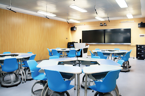 錄播教室作為信息化教育重要的推動力,在建設錄播教室需要配備有電子白板、多媒體教學平臺、高清攝錄系統,具有實時錄播、現場編輯、現場直播等多種功能,可進行課例錄像、網絡直播。評課區配備兩臺大屏幕電視,音響,可同步實時觀看教室內的上課情況,在不影響上課的同時可開展教學研討活動。