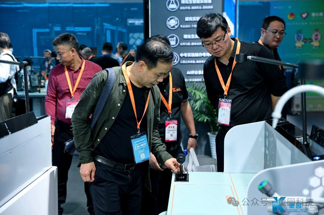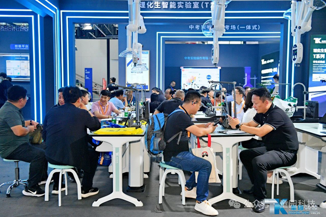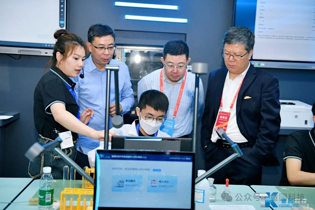 童園科技在展會現場為大家提供了理化生實驗操作考試、互動教學及AI評分的實景展示及互動,讓廣大參展領導嘉賓身臨其境地感受到童園科技產品帶來的智能化體驗。