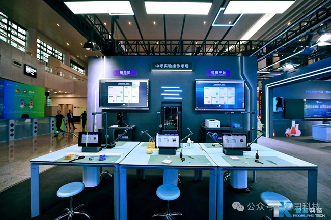 針對不同考試環境,展區內設立了一體桌面式考試終端模擬考場和分體式終端模擬考場,最大程度還原理化生實驗操作考試的真實場景。