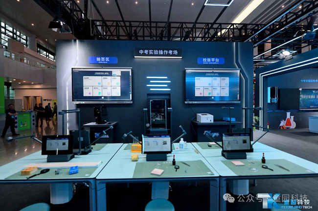 童園科技針對初中理化生實驗操作考試、教學、實訓不同場景的應用需求,在展區打造出以理化生智能實驗室、初中理化生實驗操作考試考場以及AI評分等多種應用場景,以豐富的產品和應用方案向現場嘉賓和觀眾們進行實景展示,詮釋多維布局和技術實力。