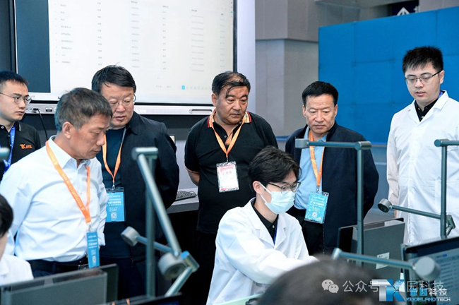 天津市教育科學研究院副院長喬盛(右一);天津市教育科學研究院原副院長、中國教育裝備行業協會實驗教學裝備分會理事長張月琪(右二);天津市教育科學研究院教育技術裝備中心副主任王戈(右三)蒞臨指導