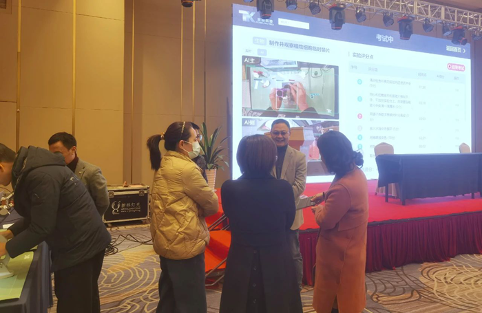 活動開始,各位企業代表向領導與觀眾展示其人工智能技術與教育裝備融合的最新的產品及應用方案。童園科技代表向與會的領導、嘉賓深度介紹童園科技在理化生實驗教考評系統領域中的綜合實力,特別是童園科技理化生實驗AI教考評系統在日常教學與考試中的應用與實驗案例,贏得與會領導、嘉賓高度的贊譽與認可!