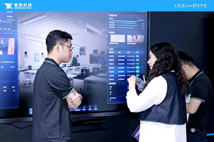 展會(huì)期間,出席開(kāi)幕式的領(lǐng)導(dǎo)、嘉賓專(zhuān)程蒞臨童園科技展位參觀指導(dǎo)。童園科技副總經(jīng)理胡剛向來(lái)訪領(lǐng)導(dǎo)詳細(xì)講解了公司在理化生實(shí)驗(yàn)室建設(shè)、實(shí)驗(yàn)教學(xué)數(shù)字化轉(zhuǎn)型等領(lǐng)域的最新研發(fā)成果,重點(diǎn)介紹了理化生實(shí)驗(yàn)室管理平臺(tái)的核心功能與應(yīng)用價(jià)值。該系統(tǒng)基于物聯(lián)網(wǎng)、人工智能、大數(shù)據(jù)等技術(shù),以智慧大屏為載體,打通“教學(xué)管控-安全管理-資源運(yùn)維”全鏈路,涵蓋設(shè)備一鍵管控、實(shí)時(shí)環(huán)境監(jiān)控、設(shè)備狀態(tài)監(jiān)測(cè)、耗材及危化品動(dòng)態(tài)管理、AI安全預(yù)警、數(shù)據(jù)化臺(tái)賬管理等六大核心功能,實(shí)現(xiàn)實(shí)驗(yàn)室從課前準(zhǔn)備、課中管控到課后運(yùn)維的全流程智能化管理,為學(xué)校筑牢實(shí)驗(yàn)教學(xué)安全防線。