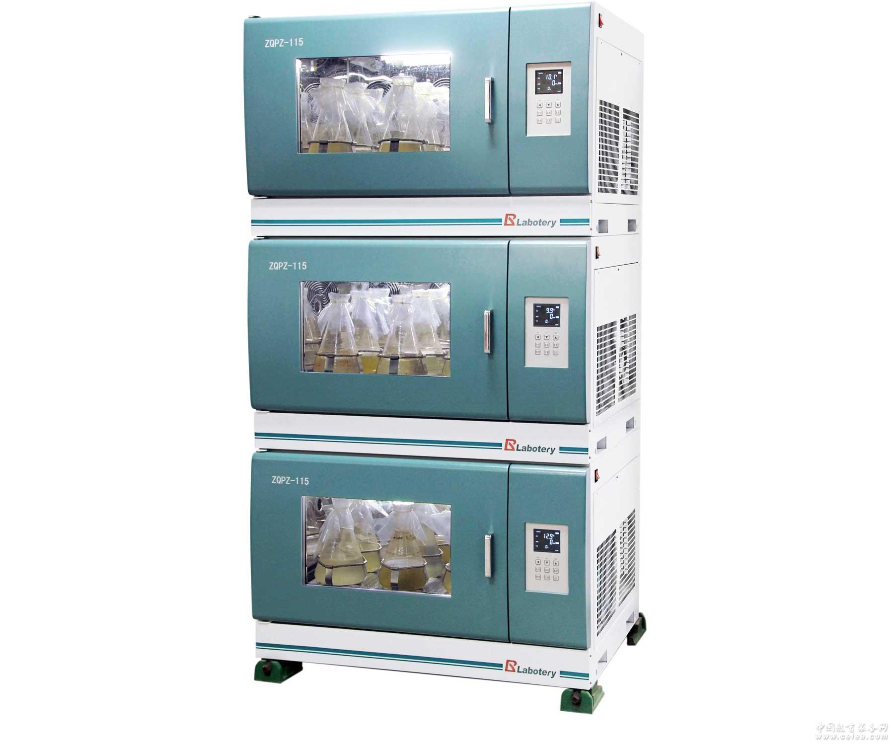 產品詳細介紹組合式振蕩培養箱系列ZQPZ-228 ZHPZ-228 工作室采用優質不銹鋼鏡面板加工,便于清潔 最大三層疊加組合方式,占用空間小,可有效利用實驗室空間;每層獨立控制,可設定不同溫度及轉速 上下翻轉式開門方式,抽拉式托盤,方便裝卸搖 產品特色 ■工作室采用優質不銹鋼鏡面板加工,便于清潔; ■最大三層疊加組合方式,占用空間小,可有效利用實驗室空間;每層獨立控制,可設定不同溫度及轉速 ■228型采用上下翻轉式開門方式,抽拉式托盤,方便裝卸搖瓶; ■內膽底部四周設計有防水擋板,防止液體流入下倉,保護電機不會因液體泄漏而損壞,且便于清理; ■中空鋼化玻璃門,方便觀察內部情況;側面配有¢30mm測試孔,方便測試及滿足樣品對氧氣的需求; ■配有照明燈和紫外滅菌燈,便于觀察和滅菌 ■ZQPZ系列采用進口無氟制冷壓縮機,配以獨特的制冷工作方式,確保壓縮機不會因自身過熱自保關閉,從而達到優質的控溫效果; ■離心式循環風道,強制工作室內的空氣流動,溫度更加均勻; ■采用直流無刷伺服電機驅動,轉速測定精確,壽命長,免維護,并可進行正反轉自由設定轉換; ■具有門控功能,開門自動停止轉動; ■采用五軸一體的偏心輪軸驅動,運行平穩、使用壽命長; ■LCD大屏幕液晶屏顯示和真彩觸摸屏程序控溫兩種控制系統形式可選,充分滿足您的需求; ■具有定時功能,時間設定范圍為0~9999分鐘(小時); ■具有斷電記憶功能,避免因斷電、死機造成數據丟失; ■具有超溫聲光報警、自動斷電功能; ■具有故障自診斷功能;
