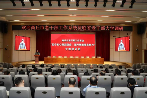 近日,河南省商丘市委組織部副部長、老干部局局長王培富帶領(lǐng)全市老干部工作系統(tǒng)一行60余人到河南省老干部大學參觀學習。省委組織部副部長、老干部局局長段君海,副局長王金貴陪同。