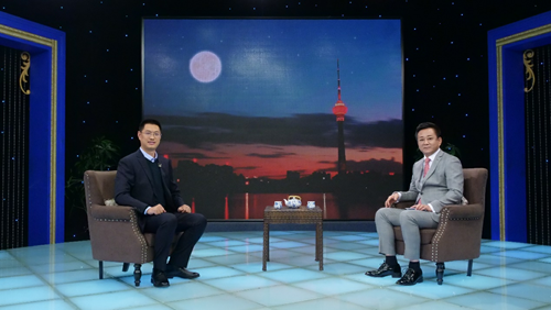 圖片說(shuō)明:華文眾合董事長(zhǎng)做客央視《逐夢(mèng)年代》 與主持人朱軍暢談智慧書(shū)法教育