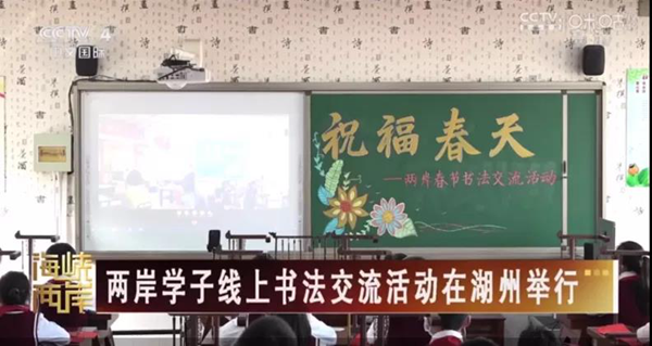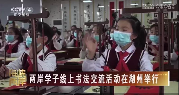 據(jù)中央電視臺(tái)中文國(guó)際頻道“海峽兩岸”欄目報(bào)道,27日,兩岸春節(jié)書(shū)法藝術(shù)交流活動(dòng)在浙江省湖州市練市小學(xué)舉行,臺(tái)灣省南投縣魚(yú)池鄉(xiāng)魚(yú)池小學(xué)的百余名師生通過(guò)視頻連線的方式參與交流,共同感受中華傳統(tǒng)文化的魅力。