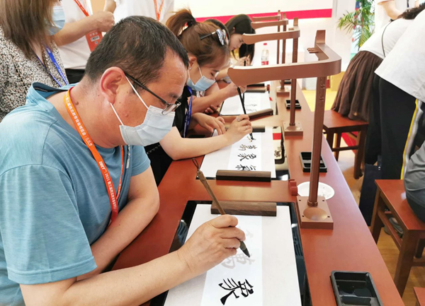 觀眾進行沉浸式毛筆體驗