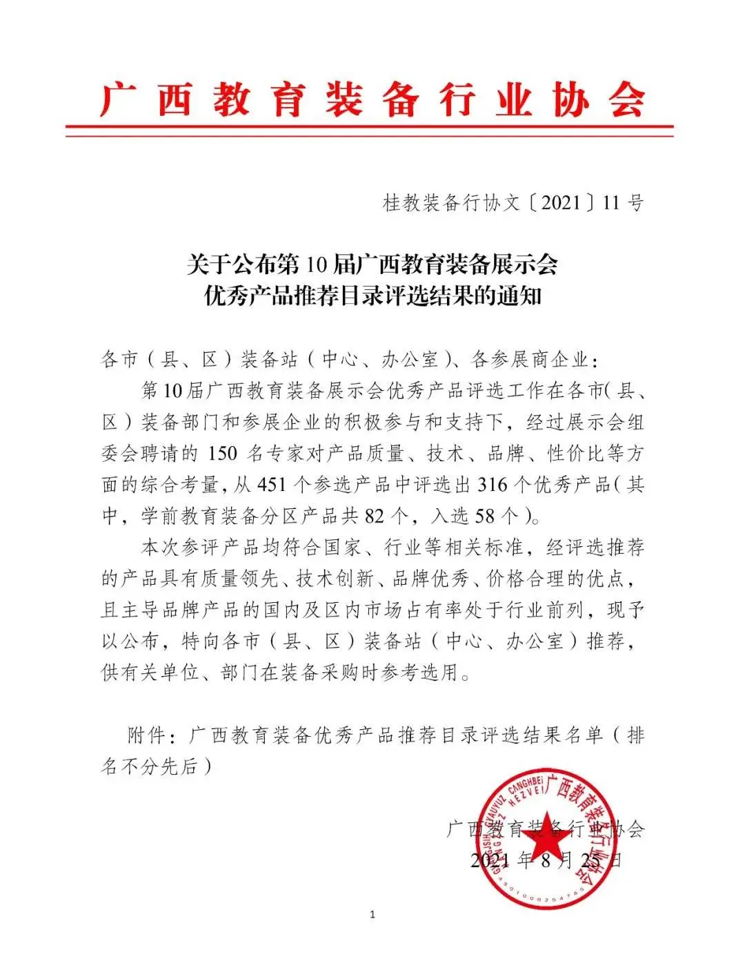 ● 關于公布第10屆廣西教育裝備展示會優秀產品推薦目錄評選結果的通知
