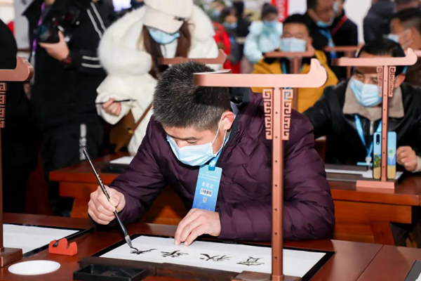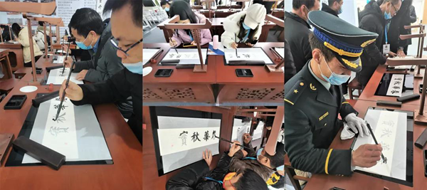 觀眾進(jìn)行沉浸式毛筆體驗(yàn)