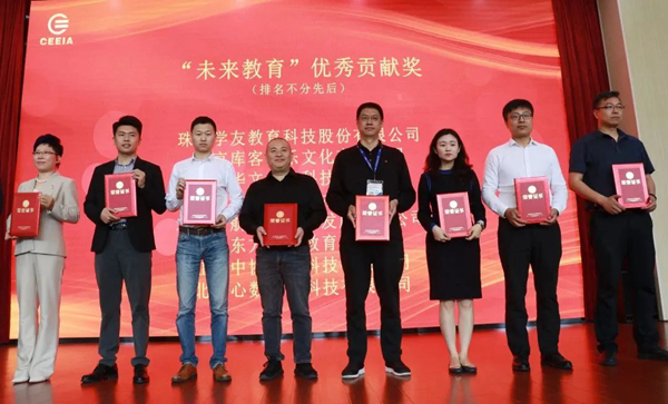 教育部關心下一代工作委員會常務副主任、中國教育裝備行業協會專家委員會主任王富(中)、中國教育裝備行業協會未來教育裝備分會理事長葉寶凌(右二)、中國教育裝備行業協會未來教育裝備分會秘書長孔凡明(右一)蒞臨指導