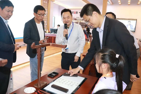 展會前夕,在江西省教育技術與裝備發展中心、江西省教育廳教學教材研究室、中國教育裝備行業協會未來教育裝備分會主辦的“教育新技術與課堂應用融合實踐成果交流”活動中,華文眾合作為書法教育裝備領軍品牌,走進南昌市紅谷灘區騰龍學校,展示智慧書法教育裝備前沿科技,并向南昌市紅谷灘區騰龍學校捐贈價值二十余萬元的智慧書法教學軟件系統,助力學校書法教學現代化發展。
