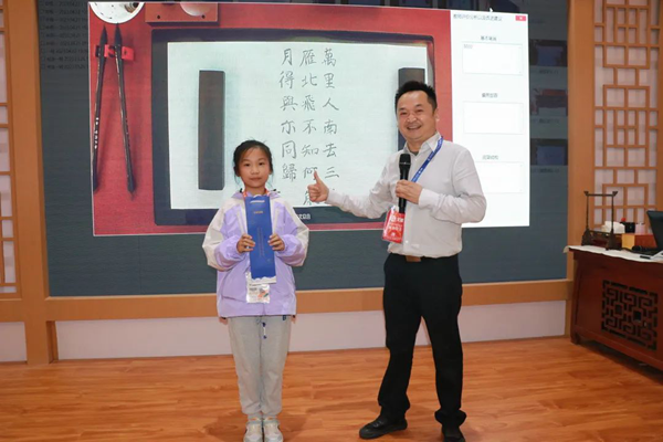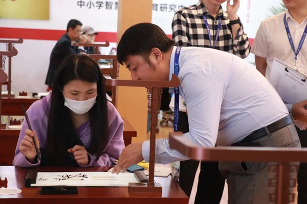 此次展會,華文眾合帶來兩大新科技——Ai評價功能、筆尖跟蹤技術。傳統書法教學一直面臨教師水平參差不一、教學效果高低不一、學習效果無法檢驗等問題,華文眾合第8代智慧書法教室運用人工智能技術,突破師資短缺、課程體系缺位等限制,填補傳統書法教育短板。Ai評價功能從筆畫、結構方面對學生的書寫進行專業評測指導,給予糾錯和建議,讓“Ai老師”隨時隨地輔助學生書法學習。對于具備示范能力的老師,系統配置了基于人工智能技術的筆尖跟蹤功能,能夠實時追蹤書法老師的筆尖,讓學生看到更清晰、更準確的運筆細節。