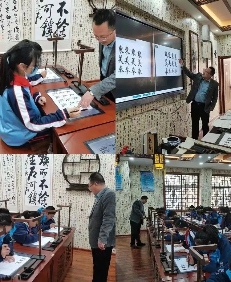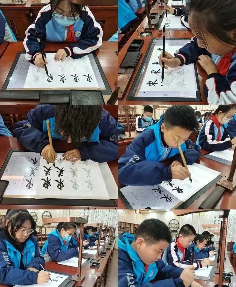 3月5日,泰安市岱岳區開元中學書法社團活動開展,七年級二十五位優秀學子齊聚智慧書法教室。