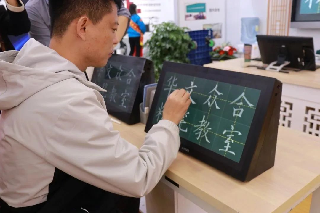 華文眾合智慧粉筆教室惹人注目,觀眾進行體驗