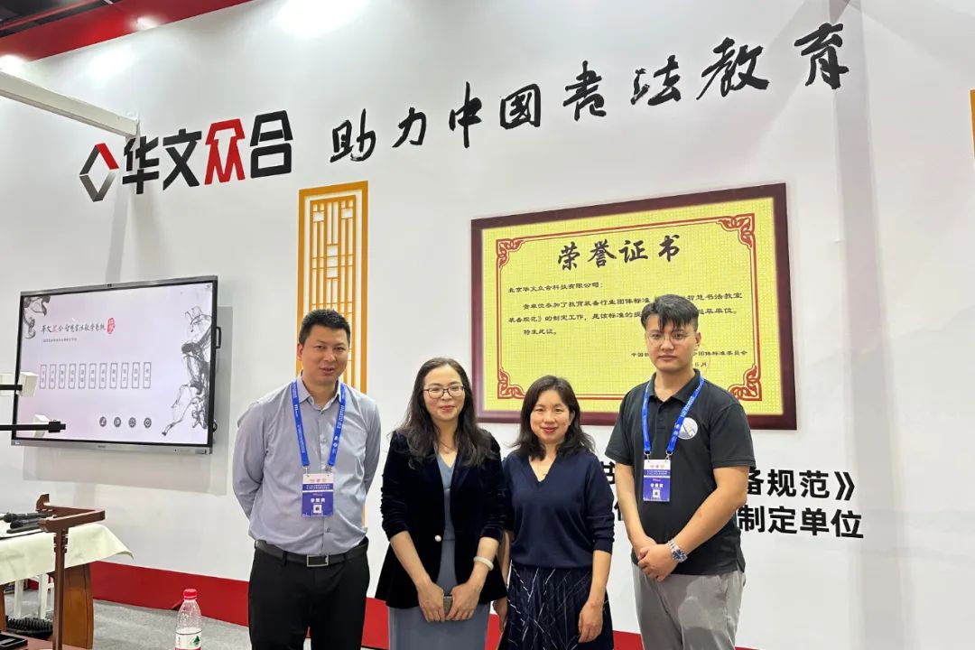 深圳市教育裝備行業協會會長彭錦環(左二)蒞臨指導華文眾合展位
