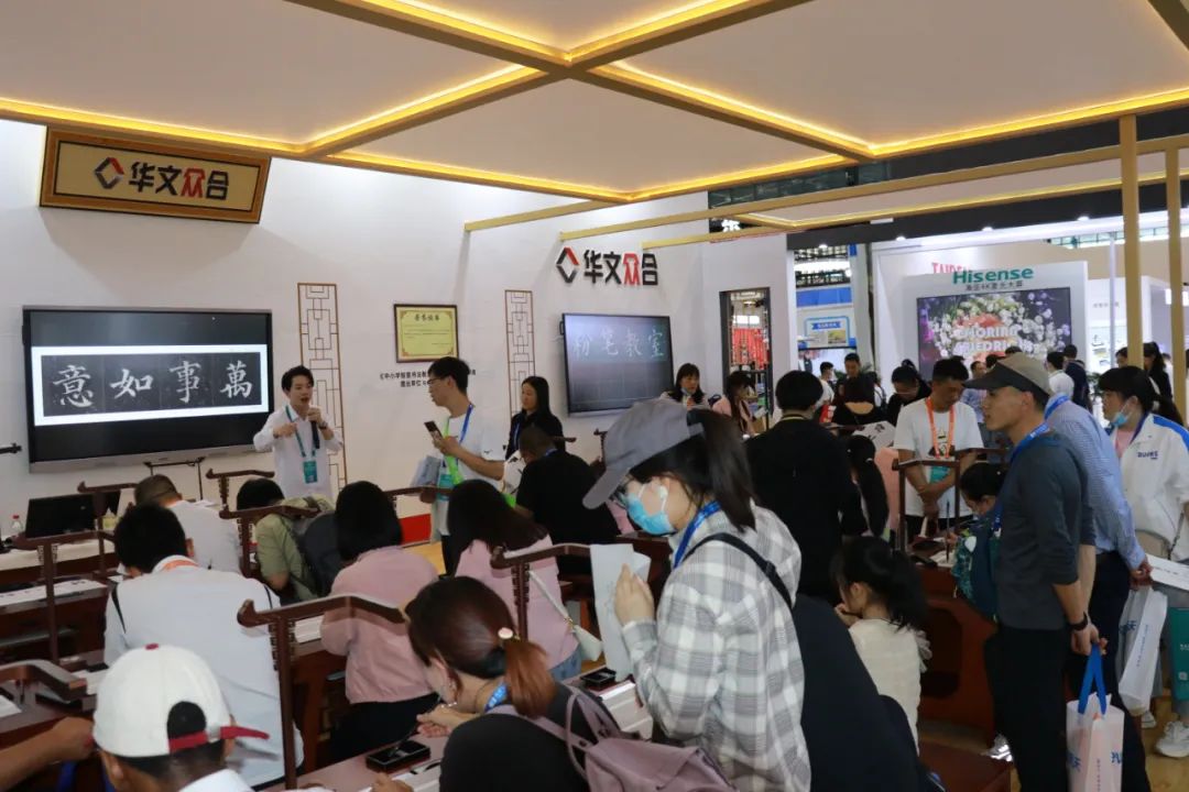 2023年5月12日,由中國教育裝備行業協會、河南省教育廳指導,河南省教育裝備行業協會主辦的第五屆河南省教育裝備博覽會在鄭州國際會展中心隆重開幕。本屆博覽會在“數字引領 創新發展”目標引領下,匯集教育裝備行業內權威領導專家、眾多領軍企業,對話交流教育信息化、教育裝備數字化新發展。華文眾合攜第8代智慧書法教室、智慧粉筆教室亮相此次展會,以科技創新賦能傳統書法課堂,展現書法教育新模式、新理念。