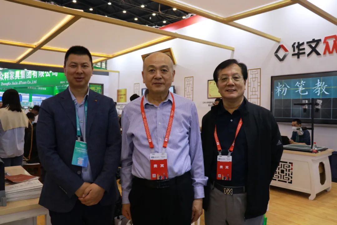 教育部關心下一代工作委員會常務副主任、中國教育裝備行業協會專家委員會主任王富(左二)、中國教育裝備行業協會秘書長李瀛(左一)、河南省教育資源保障中心主任王德如(右一)蒞臨指導