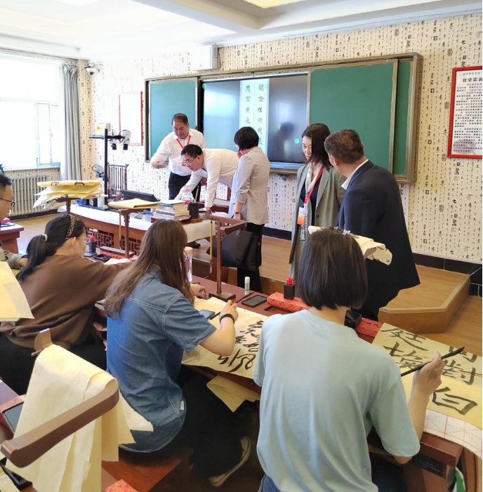 沈陽師范大學原副校長關松林教授、華東師范大學亞洲數(shù)學教育中心主任范良火、長春師范大學數(shù)學學院院長劉仁云;烏蘭察布副市長雷昆,烏蘭察布市教育局副局長王冬妮蒞臨集寧師范學院書法教室參觀考察。黨委書記朱玉東、校長劉春、副校長李景杰、文學院院長郭鵬、書法老師郝青山陪同參觀。