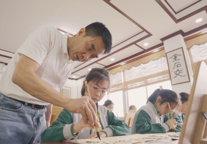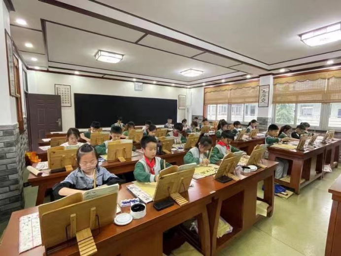 長山腳下,古海塘畔,與共和國同齡的長山小學(xué)是全國書法教育示范學(xué)校。學(xué)校以“立字立人、善學(xué)善行”為辦學(xué)理念,將“三國研藝”與各學(xué)科教學(xué)有機(jī)結(jié)合,積極踐行“長小古韻”文化育人的教育新路徑。蕭山區(qū)長山小學(xué)圍繞“傳統(tǒng)與科技相融合”的教學(xué)理念,加大教育裝備投入,為學(xué)生安裝了華文眾合智慧書法教室,將傳統(tǒng)書法教學(xué)與現(xiàn)代數(shù)字技術(shù)相融合,為書法教學(xué)注入新活力。