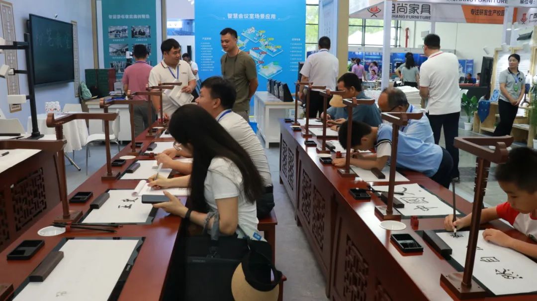 7月14日,第12屆廣西教育裝備展示會在南寧國際會展中心隆重開幕。本次展示會由中國教育裝備行業協會、廣西教育技術和信息化中心指導,由南寧市人民政府、中國國際貿易促進委員會廣西分會、廣西國際博覽集團有限公司主辦,南寧市教育局、南寧市文化廣電和旅游局、中國國際貿易促進委員會南寧市支會、南寧國際會展中心有限公司、廣西教育裝備行業協會共同承辦。展示會呈現以教育數字化為主題,立足廣西、輻射西南、面向東盟,內容豐富、體驗感強。華文眾合在南寧國際會展中心6號館6A07展位精彩亮相,展現創新研發成果,引領智慧書法行業發展。