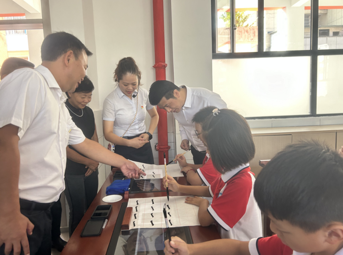 活動當天,劉智勇一行還實地參觀了市第一民族實驗小學新教學樓,現場觀摩同學們的學習情況。在位于新教學三樓的智慧書法教室里,劉書記聽取了學校工作人員對智慧書法教室的詳細介紹,對智慧書法教室在書法學習和應用上表示了充分肯定,他指出:“教育還是要加大投入,投入到位后,效率就會提高”。