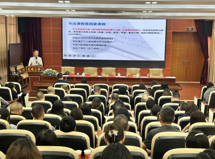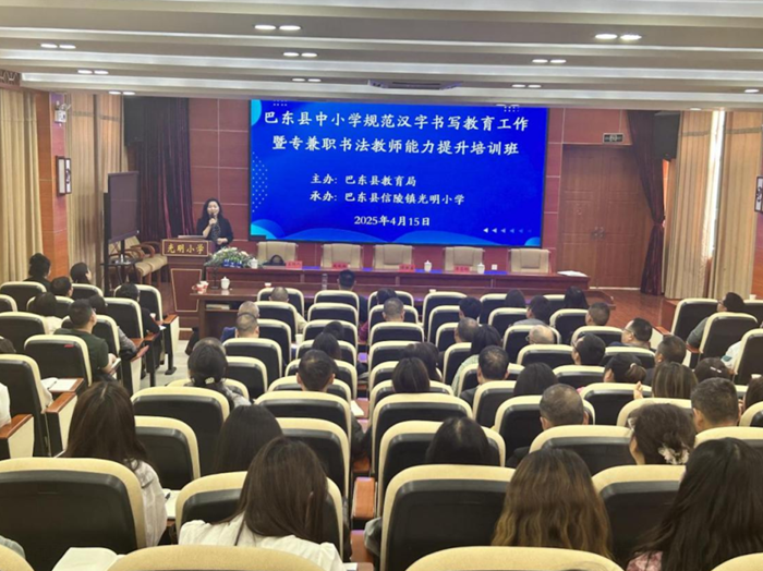 為了切實推動湖北省巴東縣中小學規范漢字書寫教育,加強中小學師生漢字書寫教育,培養學生規范書寫意識和審美能力,提升語文核心素養。2025年4月15日上午,由巴東縣教育局主辦,巴東縣信陵鎮光明小學承辦的“巴東縣中小學規范漢字書寫教育工作暨專兼職書法教師能力提升培訓班”在光明小學報告廳隆重舉行。