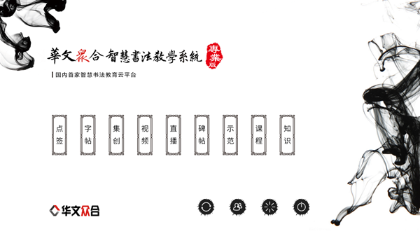 系統界面如下圖所示,系統包含點簽、字帖、集創、視頻、直播、碑帖、示范、課程、知識欄目。