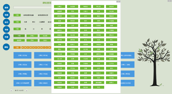 (1)選擇“碑帖”欄目,可以看到有年代、書體、作者等選項;