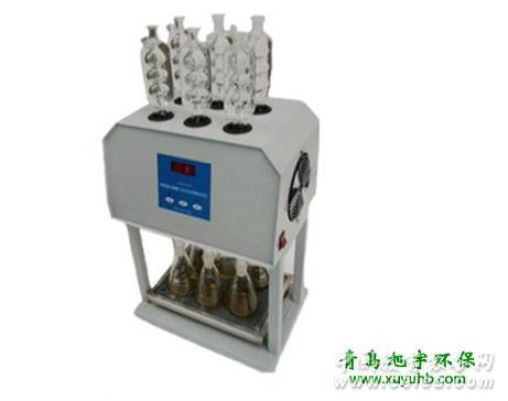 產品詳細介紹青島旭宇DL-801C型標準COD消解器一、產品介紹: 國家標準GB11914-89分析方法規范地制定了水質化學需氧量COD(cr)的測定步驟,嚴格地規定了方法的加熱消解時間、溶液酸度、氧化劑的用量等條件指標。顯而易見,水質COD(cr)的測定是有嚴格的條件規定,違背了條件規定進行操作,就會影響測定的準確性。 旭宇DL-801C型標準COD消解器遵循了國際標準(ISO)和國家標準(GB)的基本原則,保證了回流加熱微沸2小時的消解操作,試劑溶液的配制和加入量都和GB法一致,確保可靠精確的分析結果。 旭宇DL-801C型標準COD消解器采用微機技術進行定時控制加熱電爐,可對5個(定做)、6個(標配)、10個(定做)消解錐形回流裝置同時進行加熱。達到節能、減低電力負荷、節水、提高效率的目的。 旭宇DL-801C型標準COD消解器采用玻璃毛刺回流管代替球形回流管,并以風冷技術取代自來水冷卻方式,既可節水又能使儀器規范化,同時還提高了儀器使用的安全性。 儀器的化學溶液配制、操作和COD值的計算完全遵照GB11914-89,COD值低于50mg/L的水樣可通過稀釋滴定劑和氧化劑來提高精確度, 高于1000mg/L的COD水樣,可以通過水樣的比例稀釋來完成測定。 二、技術特點: 1、表面耐腐、保溫型 2、無需倒入其他瓶中,三角燒杯加熱后可直接測量,方便使用 3、節能、降低電力負荷、提高效率 4、加熱均勻、使用壽命長 5、帶刺回流管、冷卻效果好 6、具有風冷功能、經濟實用 三、性能參數: 1、測量范圍:0-1000mg/L、0-10000mg/L(水樣稀釋) 2、溫度范圍:32-399℃ 3、設定時間:0-999分鐘任意設定 4、測量時間:不大于2h 5、測量誤差:鄰苯二甲酸氫鉀標準溶液(500mg/L)、 6、相對標準偏不大于5.0%工業有機廢水(500mg/L)、相對標準偏不大于8.0% 7、環境溫度:5-40℃ 8、加熱功率:1300W(AC 220±22V,50HZ) 9、消解樣品:6個(標準)5個、10個樣品(定做)