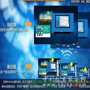 產品詳細介紹軟件介紹 “華城道多媒體推屏互動軟件”Windows 版是一款基于多點觸控、多屏互動、無線傳輸等技術研發的多屏幕交互軟件適合會議、教學、展覽展示場景的文檔和多媒體交互、展示以及多個屏幕之間的互動。 ' ’推送端”可通過互動平板將 PDF 、 PPT 、 WORD 、 EXCEL 、 Visio 、 Project 、高清圖片視頻、網頁 9 種格式的多媒體以及拍照內容從一個屏幕瞬間推送到多個終端(同時支持多個屏幕顯示終端,支持有觸控或沒有觸控功能的顯示設備,如投影機、電子白板、多點觸摸屏) , 同時還能通過‘’推送端”對所有“接收端“的內容進行同步控制(可任意放大、縮小、平移、旋轉和標注多媒體內容,標注結果可回顧瀏覽)“接收端”的內容可由“推送端”進行遠程控制互動,也可以獨立互動。