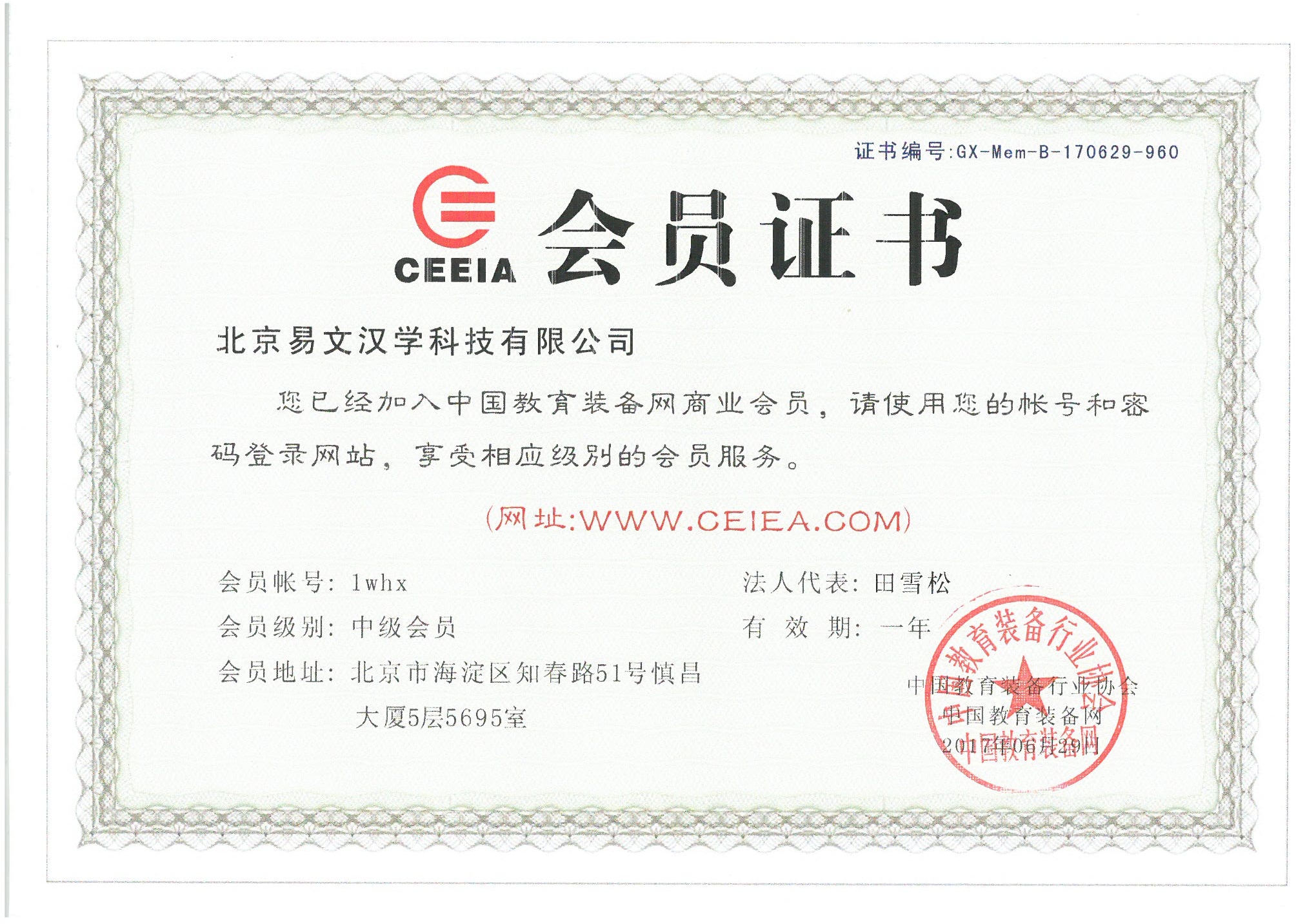 中國裝備網(wǎng)會員證書