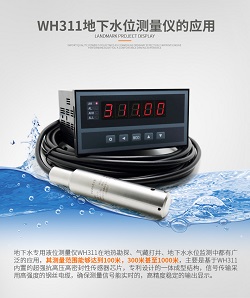 地下水液位變送器,溫泉地熱井水位溫度測量WH311 防雷水位測量儀 無論是深井、水庫、河流等液位測量,還是消防水池/水箱水位監測,深圳市東方萬和液位測量都有出色的表現。 水庫、河流、地下水監測場合-----運用水庫閘前閘后水位監測 深井液位測量場合------深井專用系列可精確顯示到厘米 消防水池水箱液位顯示場合------含消防驗收全套資料 污水處理場合------運用專利防堵設計 液位監測監控場合--------液位溫度一體式傳感器可同時測量水位和溫度