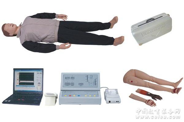 主要部件: ■ 全身標準模擬人一臺; ■ 創傷四肢一套; ■ 電腦顯示器一臺; ■ 讀卡器一個; ■ 學員信息IC卡(20張/套)一套; ■ 學員管理軟件一套;