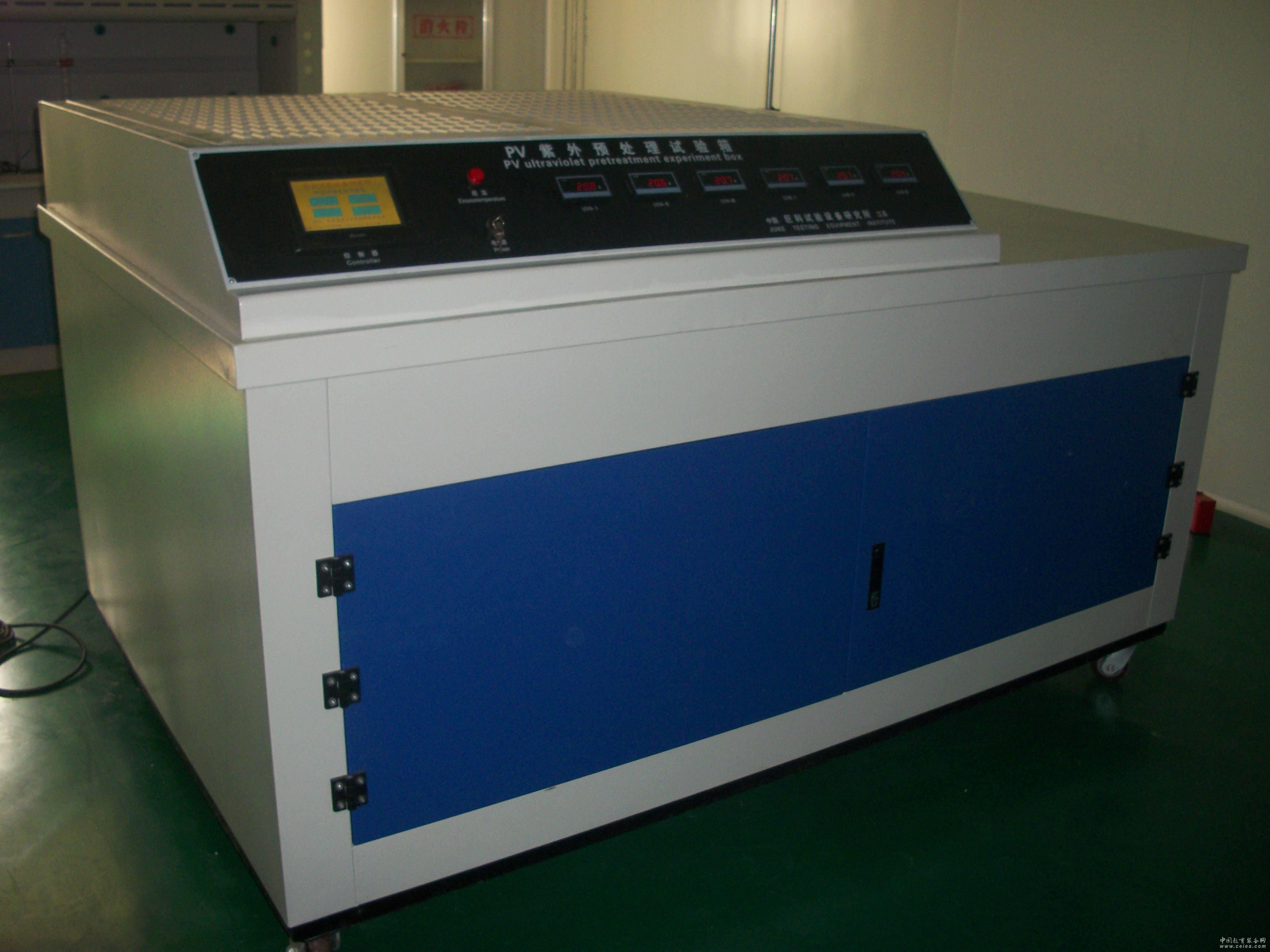產品詳細介紹針對IEC 61215、IEC 61730-2004、IEC 61345-1998、GB/T 19394-2003《光伏(PV)組件紫外試驗》組件紫外老化試驗機。已為多家大型太陽能電池板組件企業,研發實驗室及副品供應商采用。 產品用途 KM-PV-UV紫外試驗機專用于太陽能光伏組件的測試,用于評估諸如聚合物和保護層等材料抗紫外輻照能力,能夠快速、真實地再現陽光、雨、露對材料的損害,有助于材料及配方的篩選、優化 主要參數 微機控制,人機對話,自動化程度高,完全實現了輻照度、溫度等自動監控。 光電傳感器X-Y方向全程掃描,監控有效輻照區域內每組光源輻照強度情況。 實時顯示兩個波段的輻照強度和輻照量,自動完成設定試驗。 雙道門聯鎖,保證無紫外光泄漏,確保操作人員的安全。 特制的導軌裝置,可方便地推入和拉出組件。 風道循環系統,確保試驗溫度均勻性,滿足60℃±5℃標準要求。 避免紫外線照射可能產生的臭氧,是標準推薦的重要條件。 溫度傳感器為可移式,可監測組件表面任意點溫度。 采用原裝進口熒光紫外燈管,滿足280~320nm及320~385(400)nm兩個波段輻照量的要求。 工業觸摸屏+PLC可編程控制器+打印機輸出,人機對話,自動監控 保證280~320nm輻照占280~400(385)nm的比例,幅照度自動補償,同時確保組件測試面兩波段幅照均勻度±15%。 輻照計傳感器安裝于傳送軸上,自動定位。 全程掃描,輻照度自動補償,保證了均勻度及準確性。 特制的程序控制鎮流器,調幅5%~100%,保證在光源能量衰減時對能量自動補償。 輻照量自動積分,即使輻照度衰減亦不影響輻照總量的計算,并相對延長了燈管的使用壽命。 儀器內部安裝兩只經標定的輻照計,經D/A轉化傳輸至PLC,其波長分別為280~320nm與280~400(280~385)nm。 輻照度的外校選用最先進的輻照計及光譜儀標定,NIST溯源。PLC具備輻照度修正功能。 科邁公司研發的截止波長320nm濾鏡,用于儀器內部輻照度傳感器。 輻照度280~400nm范圍內不超過250W/m2/280~400nm。 系統選用原裝進口工控觸摸屏+可編程控制器,最大程度地提高了系統的測量精度和可靠性,同時使操作員的工作變的簡便和直觀。 系統的延展性能得到很大提高,程序員可以根據用戶需求隨時修改界面和程序,擴展儀器的開發空間,延長開發壽命。 系統集成了諸多技術亮點,如集中控制、自動調光、伺服驅動、紫外幅照全程全景跟蹤、試驗數據庫系統及打印功能。 質量保證 公司嚴格按 ISO9001:2000質量管理體系,ISO14001:2004環境管理體系,組織產品的設計和生產。 現場安裝調試設備,并為客戶培訓操作使用人員。 在用戶遵守產品安裝及使用規則的條件下,產品自發貨之日起十二個月之內,因制造質量問題不能正常工作時,我公司無償為用戶維修。 對保修期外的產品,我公司提供長期的技術服務。 售后服務響應時間:24小時內響應。