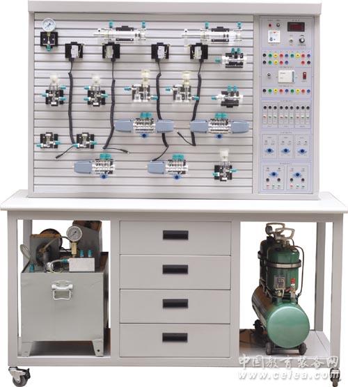 產品詳細介紹一、概述 液壓與氣壓傳動綜合實驗裝置是我公司根據高校機電一體化對氣、電、液控制的教學大綱要求,在我公司透明液壓傳動演示系統的基礎上,綜合了氣動PLC與液壓PLC控制實驗設備的優點,采用了開放型綜合實驗臺結構,廣泛征求專家教授與老師的意見,經不斷創新改進研制而成的。是目前集氣動控制技術、液壓傳動控制技術以及PLC可編程序控制器控制技術于一體的理想的綜合性實驗設備。實驗時,它們可以相互輔成,交叉控制。可以讓學生直觀、感性地對比、了解氣、電、液各自具有的特點、特色、及優缺點等。 液壓實驗元件均為透明有機材料制成,透明直觀。便于了解掌握幾十種常用液壓元件的結構、性能及用途。掌握幾十種基本實驗回路的工作過程及原理。實驗時,組裝實驗回路快捷、方便。同時,配備獨立的繼電器控制單元進行電氣控制,簡單實用。通過與PLC比較,,可以加深對PLC可編程序控制器的了解及掌握。