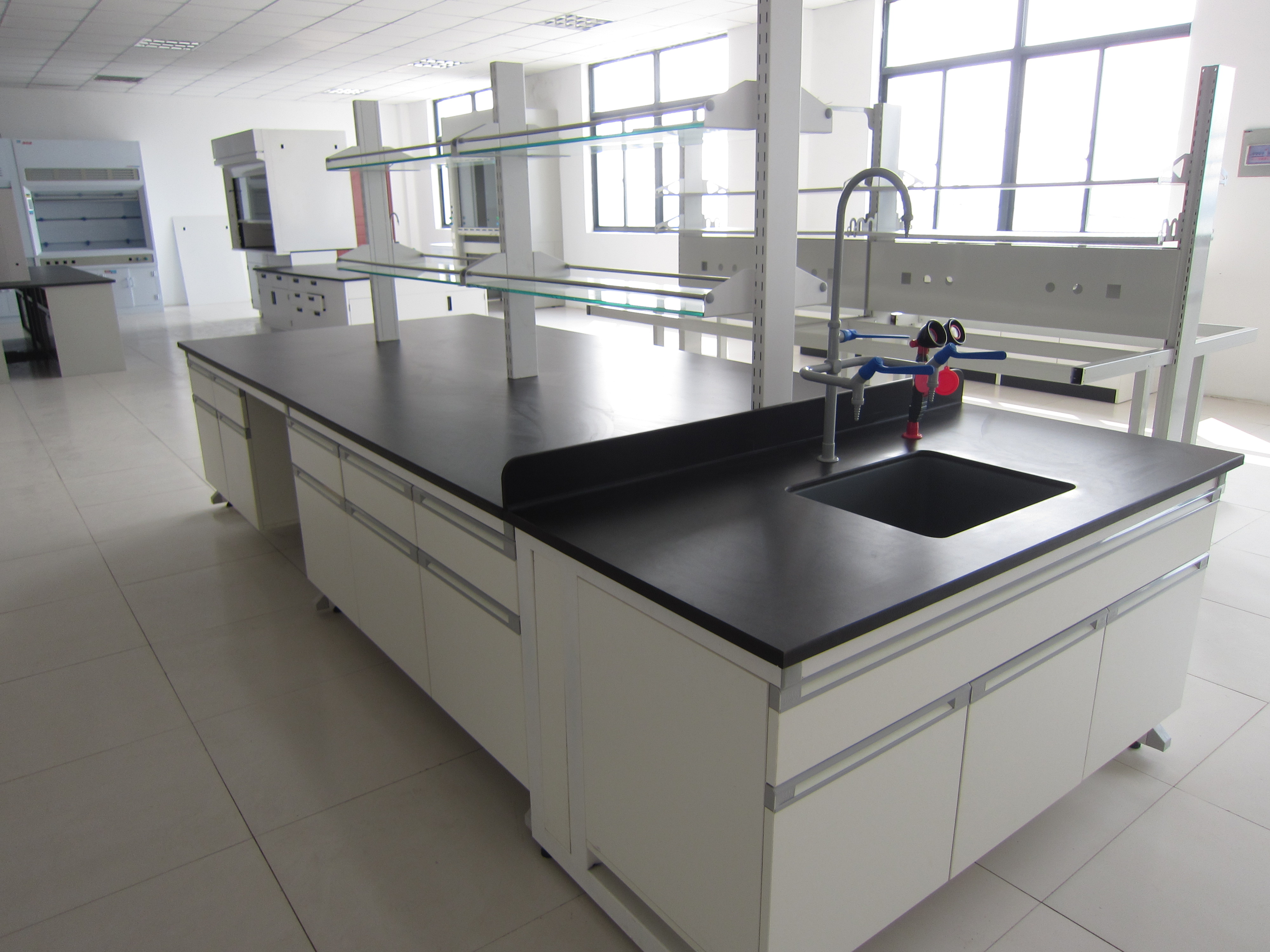 產品詳細介紹主框架:采用鞍鋼國標40*60*1.2mm厚的鋼制C型材支撐架,模具沖壓標準化連接件,表面處理后環氧樹脂粉沫噴涂固化,主框架設計可配用多種箱體結構及款式的組合;在C鋼支架備有一根橫梁。底柜托梁:采用40*60(壁厚1.2mm)優質方鋼,表面處理后環氧樹脂粉沫噴涂固化。 2、臺面種類:采用12.7mm厚的國內外知名品牌的實芯理化板,臺面連接處采用防止滲漏結構。邊緣加厚25.4mm,臺面材料保證環保,防潮、耐酸、堿耐腐蝕、安全并可靠。 3、箱體:采用吉林森工露水河E0,E1級18mm厚刨花板,雙面粘貼三聚氰胺板,斷面以優質2mm厚PVC封邊條配合優質環保熱熔膠封邊防水處理,邊緣經倒圓角處理;門面板內側并設置防緩沖減震裝置。 4、柜門及抽屜:采用吉林森工露水河E0,E1級18mm厚刨花板門和抽屜面板、側板、底板要求同柜體,配不銹鋼合金拉手;結構穩定,不變形,所有箱體加一層活動隔板;鉸鏈采用國內外知名品牌兩節鉸鏈,滑軌采用進口自關型滑軌。 5、活動背板:采用采用吉林森工露水河E0,E1級16mm厚刨花板雙面粘貼三聚氰胺板制作,拆卸方便,便于水電系統的安裝及維修;2 cm 厚PVC高溫熱壓封邊。 6、地腳:采用不銹鋼螺絲、尼龍罩蓋、橡膠底座組合結構,可自由調節高度為0~30mm。 7、洗滌池主框架:采用一體成型PP材質(大水槽、中水槽),臺面實芯理化板,邊緣雙層加厚。 8、水嘴:采用實驗室專用三口龍頭,銅質一體化設計,陶瓷閥芯。 |