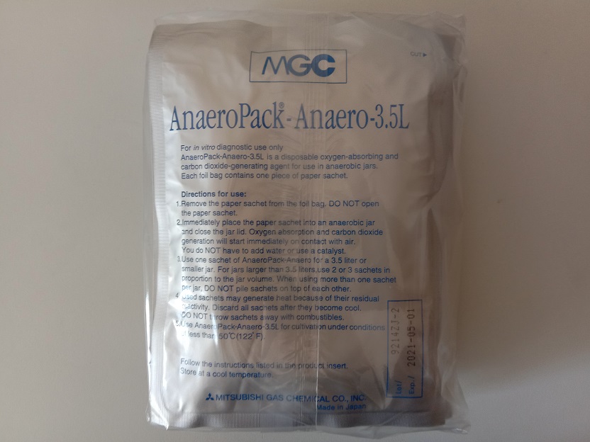 產品詳細介紹有批發價格,1包即可按批發價格供應,含13%專票運費,具體批發價格請您咨詢北京緣生化科技有限公司安經理。 北京緣生化科技有限公司作為專業培養產品供應商,產品涵蓋培養類大多數品牌,有著多年的客戶服務經驗,歡迎您的咨詢。在產品質量上,物流快遞發貨方面(8:00-20:00)均可發貨,不耽誤您的寶貴時間。包裝包裹嚴實,保證產品質量。含運費并提供13%專票。 基本程序 :“培養基配制--倒平皿--滅菌--冷卻--接種--放入適合容器--放產氣袋(完全厭氧可同時放置指示劑)--密封--放入普通培養箱--調節適合的培養溫度,即可。配套提供的密封罐或密封袋外觀透明,可隨時關注微生物生長情況,密封容器不打開則內環境不會改變,足以維持整個培養過程! - AnaeroPack·厭氧產氣袋(3.5L用),國內代碼C-35,日本番號(型號)D-06 AnaeroPackTM -Anaero 厭氧產氣袋(3.5L)使用說明書 產品用途: 配合密封罐使用,用于厭氧微生物的培養。本品可吸收容器中的全部O2,同時產生約21%的CO2。 每一個鋁塑包裝中含有一片紙袋(厭氧產氣袋)。 使用方法: 1. 將鋁塑包裝上側剪開,取出紙袋,紙袋不需要打開。 2. 立即將紙袋放入密封罐中,將密封罐蓋上。接觸空氣后將即刻吸收O2,產生CO2。不需要加水或使用催化劑。 3. 每袋AnaeroPackTM-Anaero 用于7.0升培養罐,根據培養罐的體積用2包,當使用多袋AnaeroPackTM- Anaero時,不要疊放在一起。 4. 用完的厭氧產氣袋可能會因為剩余反應而產生熱量,請等它們變冷以后再丟棄。且不要跟易燃物丟在一起。 5. AnaeroPackTM- Anaero用于45℃以下培養使用。 儲藏方法: 密封,置陰涼干燥處保存。 保存期: 在鋁塑袋的右下角印有批號及失效期,請在失效期之前使用。 生產商: 三菱瓦斯化學株式會社 MITSUBISHI GAS CHEMICAL CO., INC.